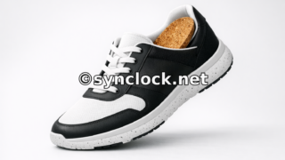 GRS認証リサイクル素材を使った「ALLEST Shin Ethical Sneaker」を紹介。コルクインソールや撥水性、安定感のあるソールが特長です。